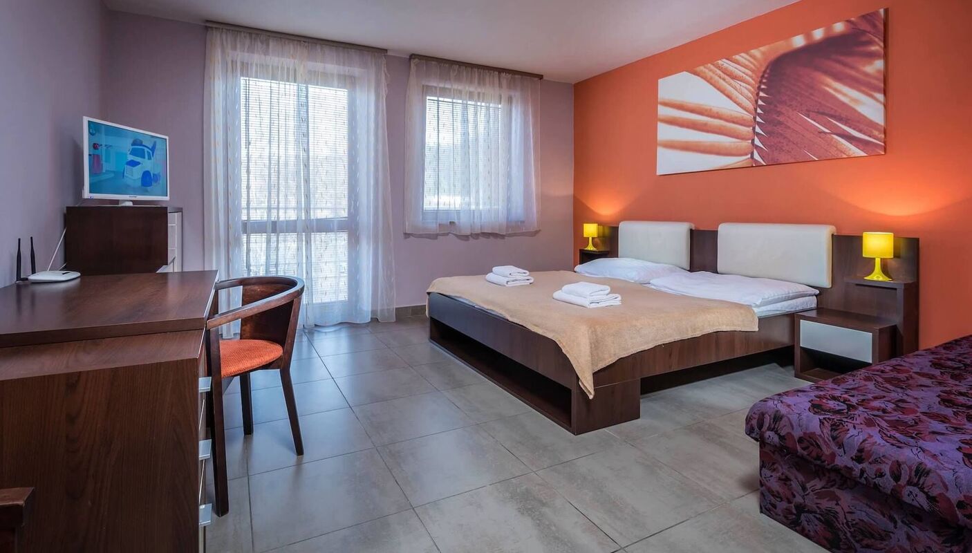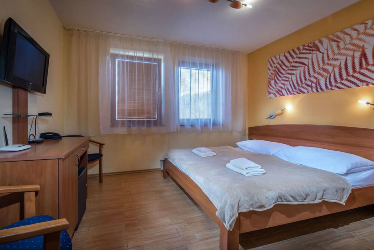 Útulné izby s Wi-Fi, TV a minibarom (niektoré s balkónom) vám doprajú pohodlie, wellness centrum so saunami, vírivkou a krytým bazénom zas dokonalý relax. K dispozícii je reštaurácia, bar, terasa, záhrada aj bezplatné parkovanie. Raňajky formou bufetu sú samozrejmosťou – a pokojne vezmite aj svojho psa, u nás je vítaný.